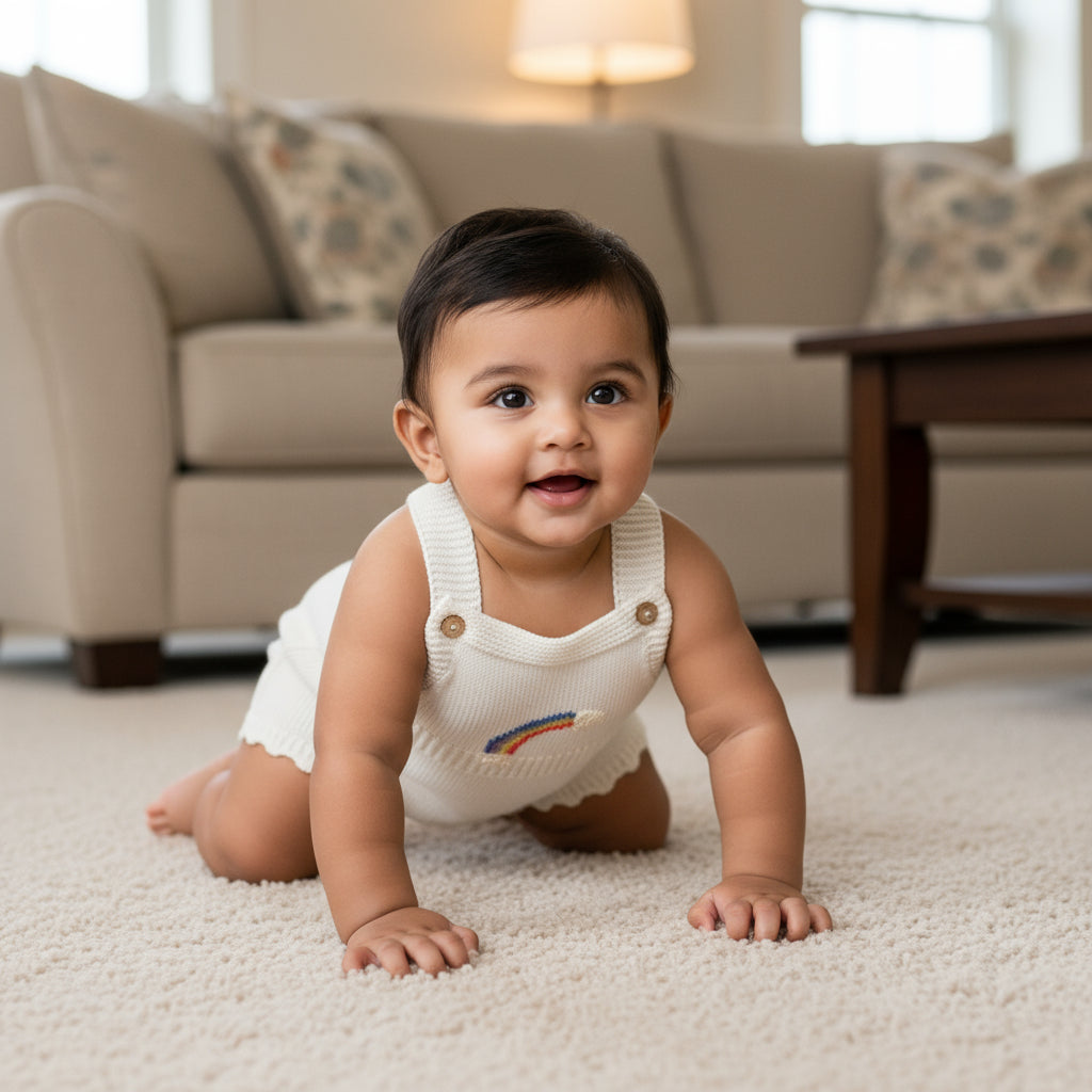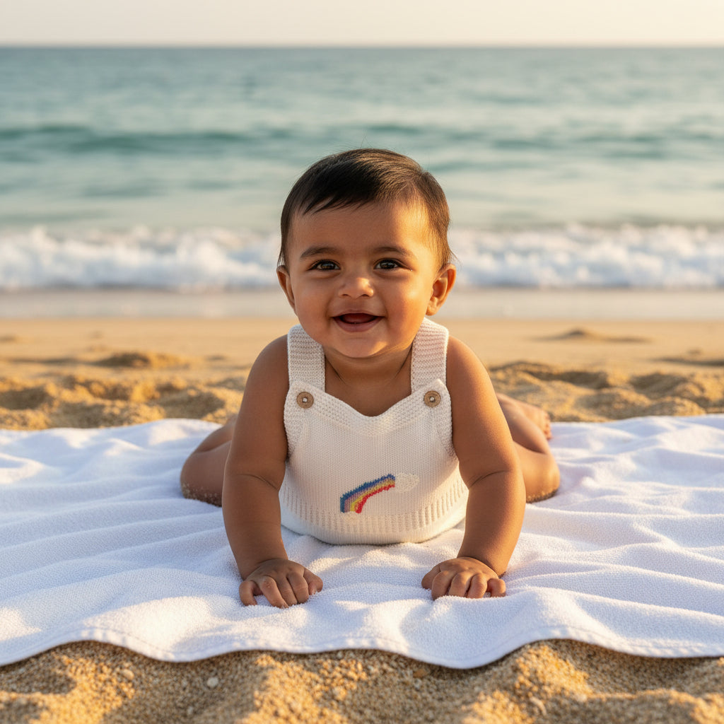 Brighten your little one’s wardrobe with this adorable cream knitted romper. Crafted from soft and breathable knit fabric, it provides gentle comfort for delicate baby skin and keeps your baby cozy all day long.
